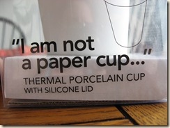 Miz - Cool aren't they? I stop for coffee every morning on the way to work and my old travel mug is no longer fit for use. Much rather drink out of porcelain than paper or metal anyway.
